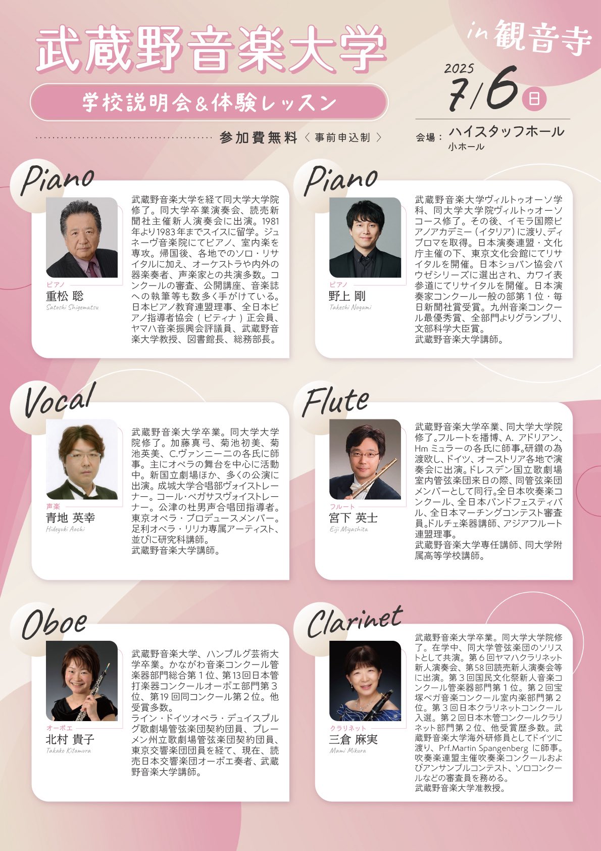 武蔵野音楽大学講師・同大学附属音楽教室講師